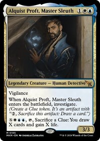 When Alquist Proft, Master Sleuth enters the battlefield, investigate. (Create a Clue token. It's an artifact with "2, Sacrifice this artifact: Draw a card.")