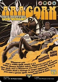 Whenever you cast a red spell, Aragorn, the Uniter deals 3 damage to target opponent.