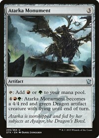 4RG: Atarka Monument becomes a 4/4 red and green Dragon artifact creature with flying until end of turn.