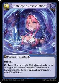 On Enter: Rest target ally. That ally can't wake up for as long as you control Cataleptic Constellation. If Cataleptic Constellation is imbued, summon two Astra Shard tokens.
