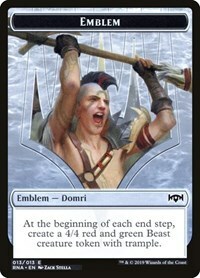 At the beginning of each end step, create a 4/4 red and green Beast creature token with trample.