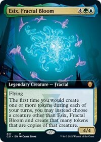 The first time you would create one or more tokens during each of your turns, you may instead choose a creature other than Exis, Fractal Bloom and create that many tokens that are copies of that creature.