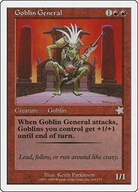 When Goblin General attacks, all Goblins you control get +1/+1 until end of turn.