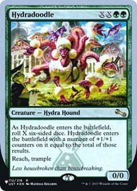 As Hydradoodle enters the battlefield, roll X six-sided dice. Hydradoodle enters the battlefield with a number of +1/+1 counters on it equal to the total of those results.