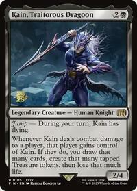 Whenever Kain deals combat damage to a player, that player gains control of Kain. If they do, you draw that many cards, create that many tapped Treasure tokens, then lose that much life.