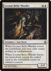 When Leonin Relic-Warder enters the battlefield, you may exile target artifact or enchantment.