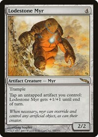 Tap an untapped artifact you control: Lodestone Myr gets +1/+1 until end of turn.