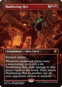 Maddening Hex deals damage to that player equal to the results. Then attach Maddening Hex to another one of your opponents chosen at random.