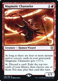 As long as there are four or more instant and/or sorcery cards in your graveyard, Magmatic Channeler gets +3/+1.
