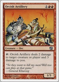 T: Orcish Artillery deals 2 damage to target creature or player and 3 damage to you.