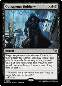 Target opponent exiles the top X cards of their library face down. You may look at and play those cards for as long as they remain exiled. If you cast a spell this way, you may spend mana as though it were mana of any type to cast it.