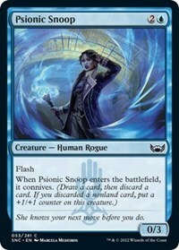 When Psionic Snoop enters the battlefield, it connives. (Draw a card, then discard a card. If you discarded a nonland card, put a +1/+1 counter on this creature.)
