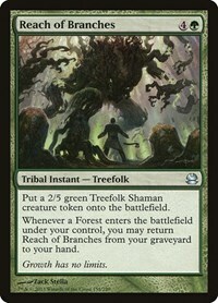 Whenever a Forest enters the battlefield under your control, you may return Reach of Branches from your graveyard to your hand.
