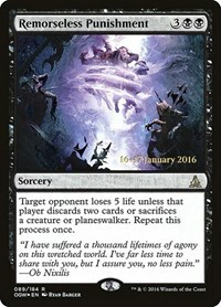 Target opponent loses 5 life unless that player discards two cards or sacrifices a creature or planeswalker. Repeat this process once.