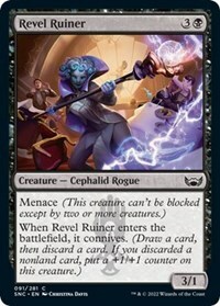 When Revel Ruiner enters the battlefield, it connives. (Draw a card, then discard a card. If you discarded a nonland card, put a +1/+1 counter on this creature.)