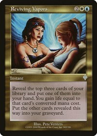 Reveal the top three cards of your library and put one of them into your hand. You gain life equal to that card’s converted mana cost. Put the other cards revealed this way into your graveyard.