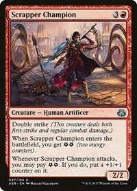 When Scrapper Champion enters the battlefield, you get EE (two energy counters).