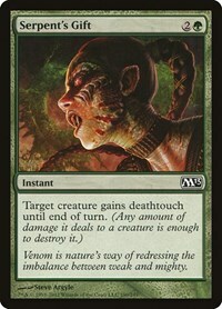 Target creature gains deathtouch until end of turn. (Any amount of damage it deals to a creature is enough to destroy it.)