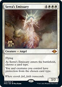 As Serra’s Emissary enters the battlefield, choose a card type.