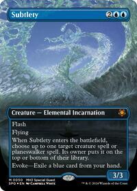 When Subtlety enters the battlefield, choose up to one target creature spell or planeswalker spell. Its owner puts it on the top or bottom of their library.