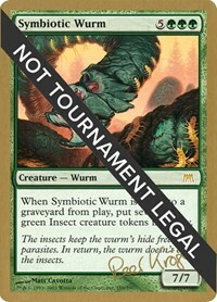 When Symbiotic Wurm is put into a graveyard from play, put seven 1/1 green Insect creature tokens into play.