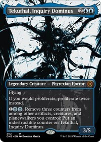 1(U/P)(U/P), Remove three counters from among other artifacts, creatures, and planeswalkers you control: Put an indestructible counter on Tekuthal, Inquiry Dominus. ((U/P) can be paid with either U or 2 life.)