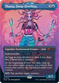 As long as your devotion to blue is less than five, Thassa isn’t a creature.