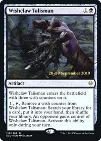 Wishclaw Talisman enters the battlefield with three wish counters on it.