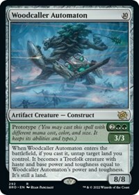When Woodcaller Automaton enters the battlefield, if you cast it, untap target land you control. It becomes a Treefolk creature with haste and base power and toughness equal to Woodcaller Automaton's power and toughness. It's still a land.