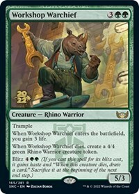 When Workshop Warchief dies, create a 4/4 green Rhino Warrior creature token.